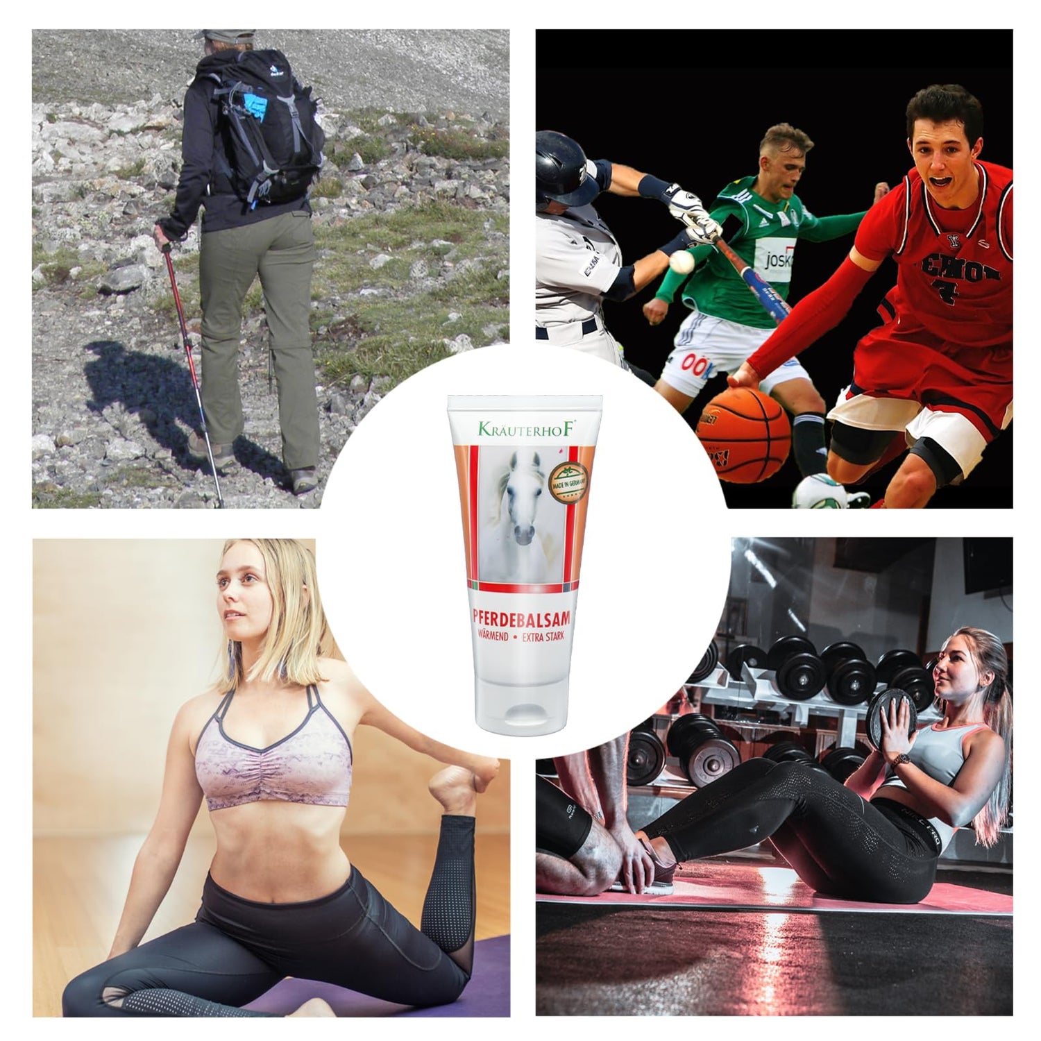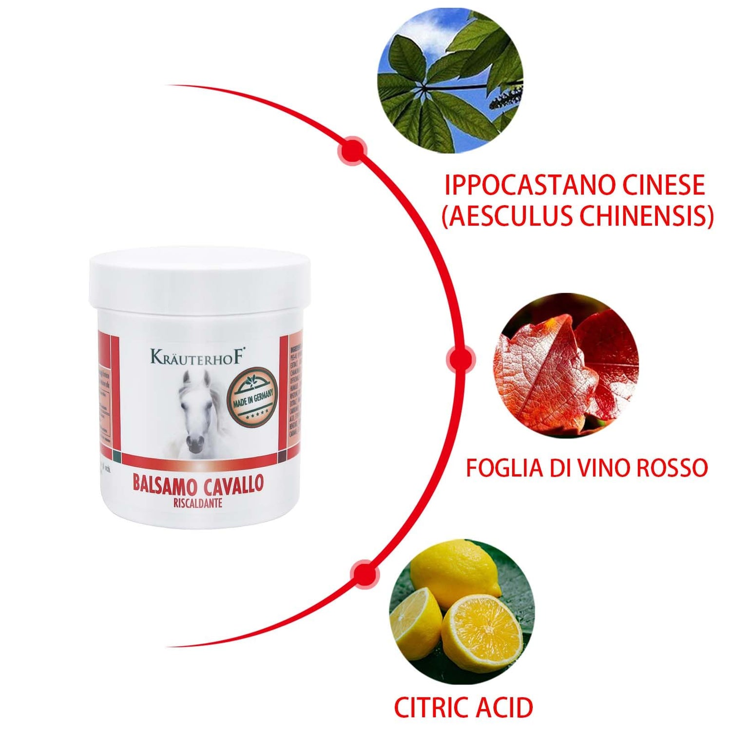 Kräuterhof Balsamo per cavalli riscaldante, extra forte, gel massaggiante - Rimedio naturale per il sollievo muscolare