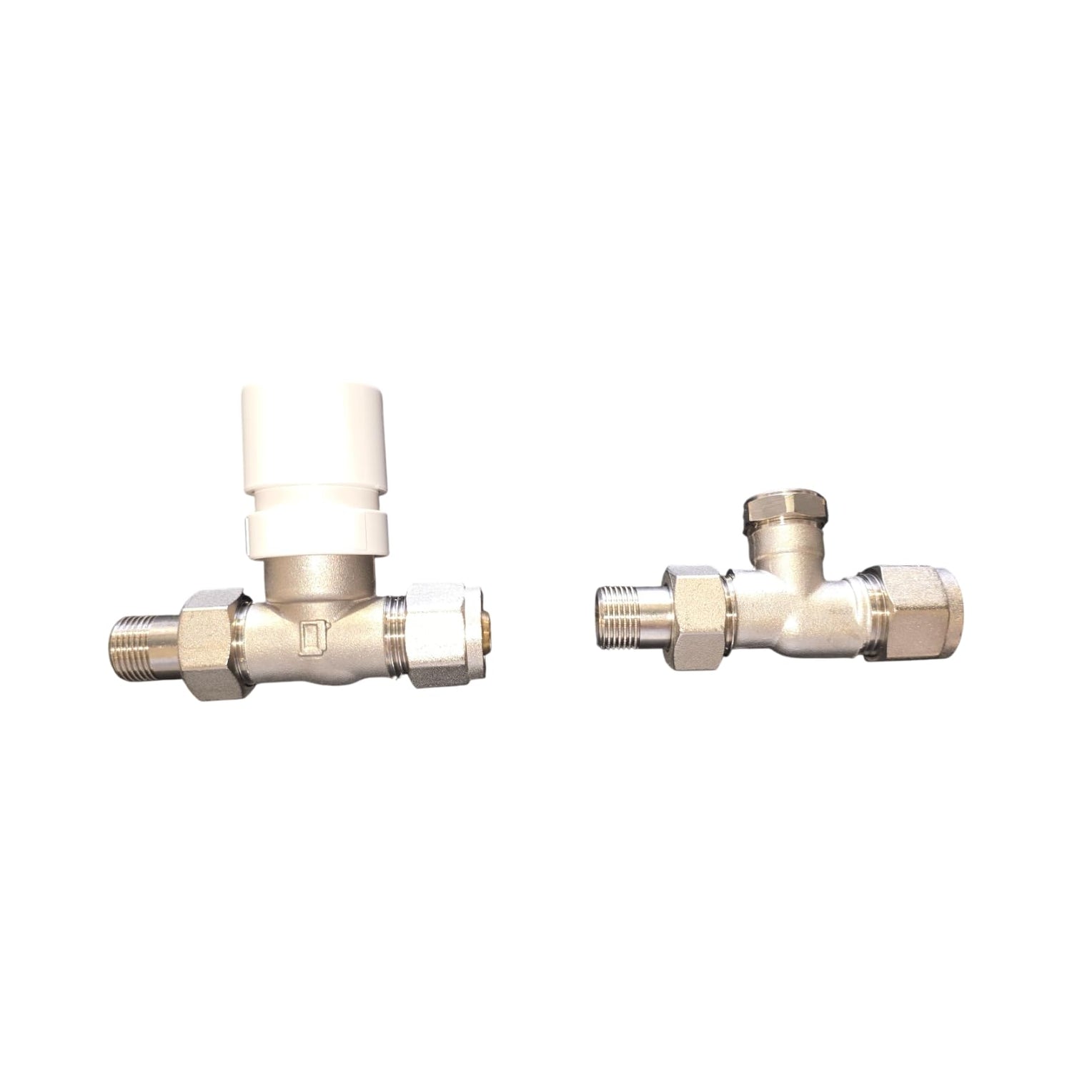 HM | Valvola e detentore dritto per Termosifoni Multistrato 3/8x16, Nichelate, con Adattatori 16mm | Controllo Temperatura, Efficienza Energetica