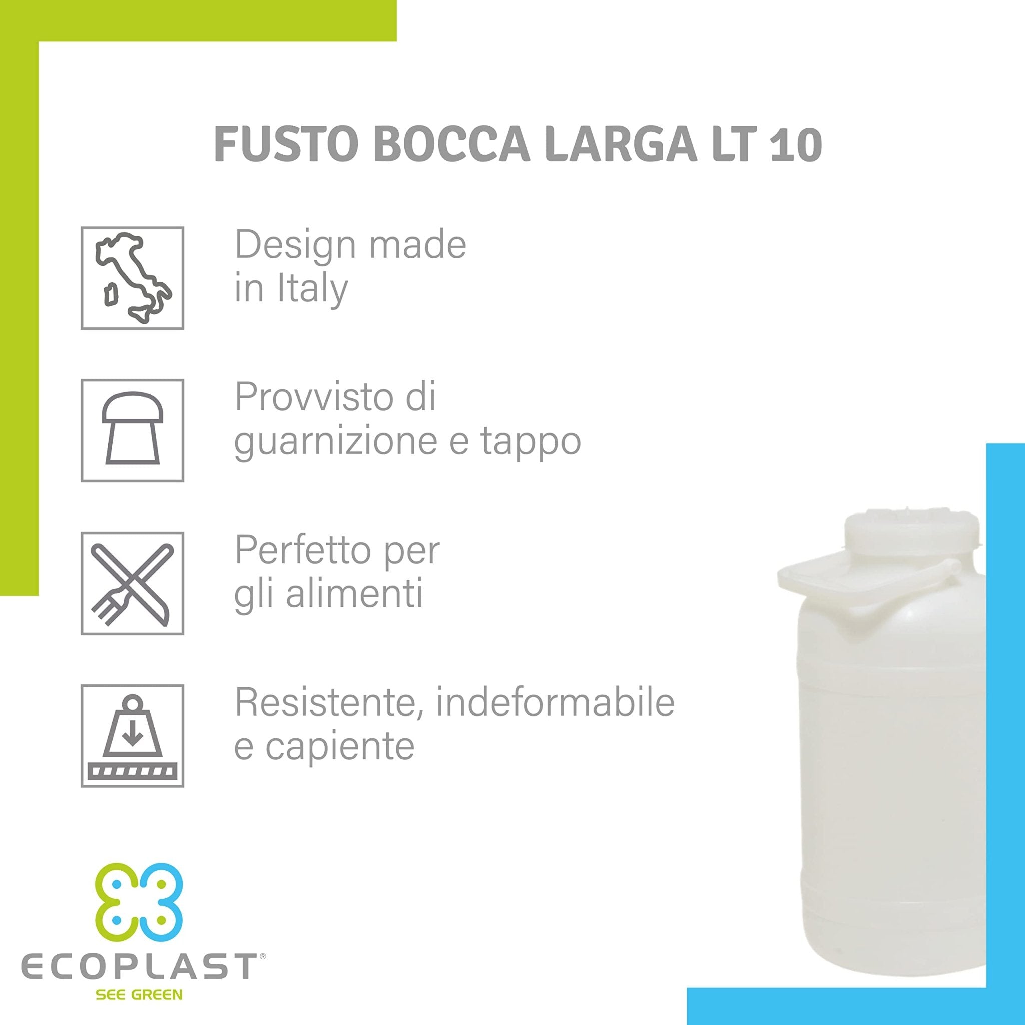 Ecoplast, Fusto Bocca Larga, Resistente e Indeformabile, Perfetto per Contenere Alimenti, Liquidi e Oli, con Guarnizione e Tappo